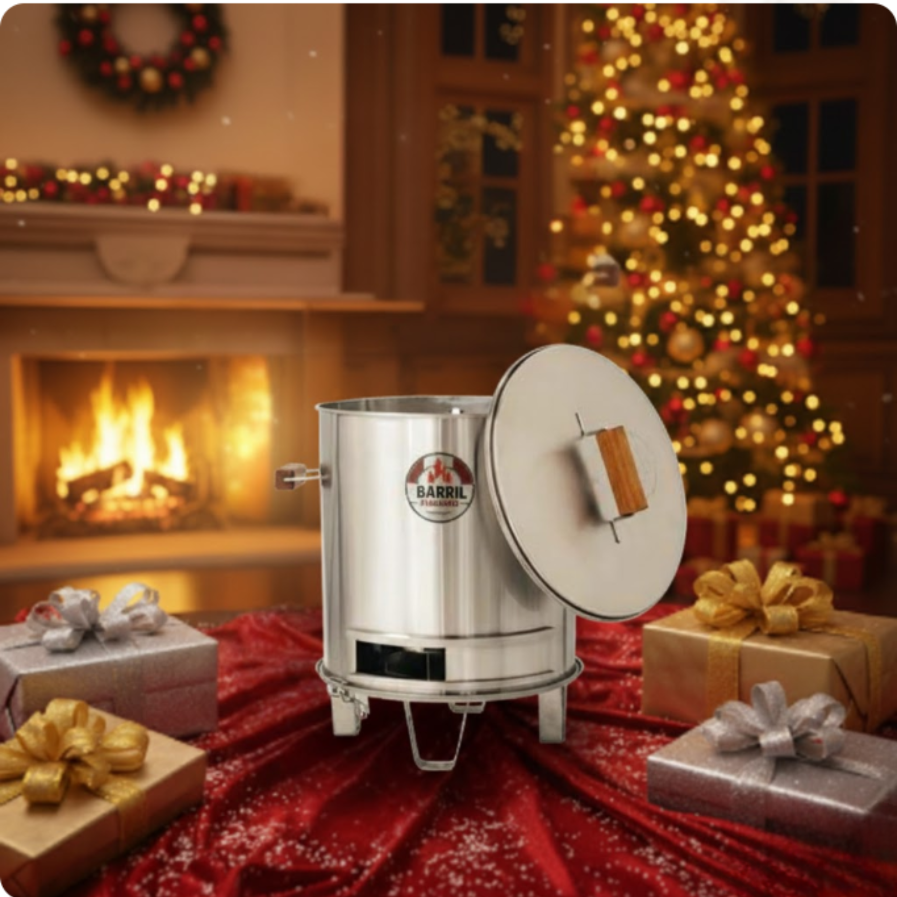 "Asador Barril Pequeño Acero Inoxidable | Parrilla y Ahumador Portátil | Para 8 a 12 Personas | 10 Años Garantía + Kit Parrillero Gratis"
